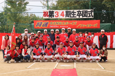 第34期生卒団式、OB戦(31期vs34期・35期)が10月18日日曜日秋空が晴れ渡る中、名古屋富士ボーイズ吉根グランドにて執り行われました。